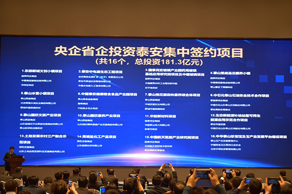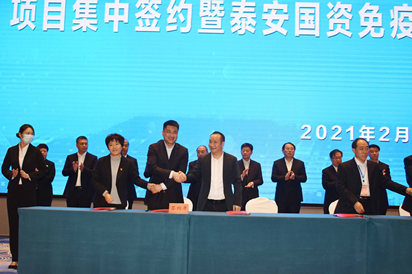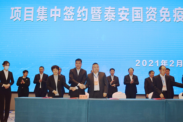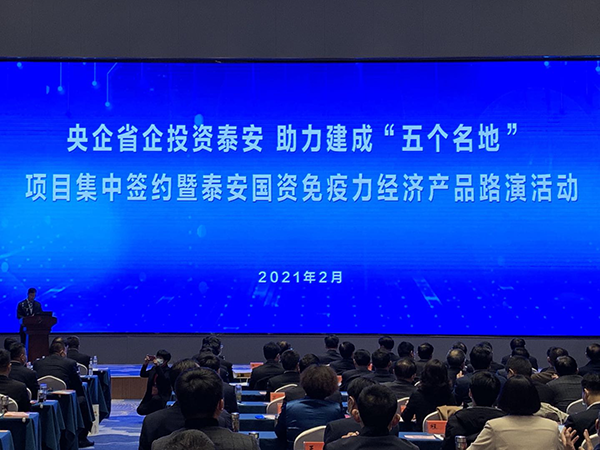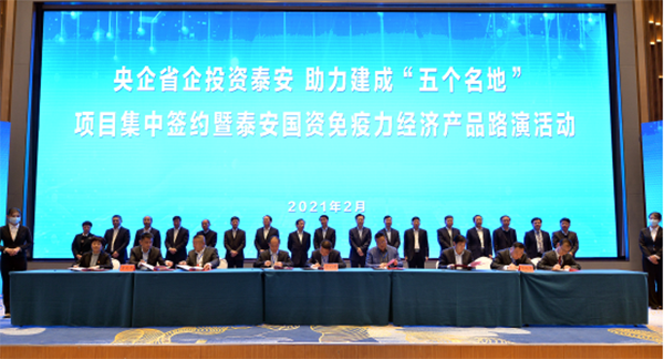 2月28日下午,我市举办“央企省企投资泰安、助力建成五个名地”项目集中签约暨泰安国资免疫力经济产品路演活动。