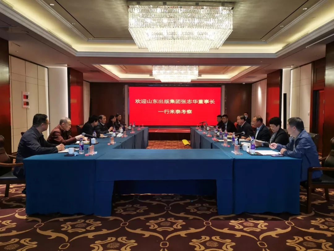 10月16日下午,山东出版集团有限公司党委书记、董事长张志华一行来泰考察洽谈合作。市委常委、常务副市长宋洪银主持项目合作座谈会,市智慧城市服务中心、市自然资源和规划局、市国资委、tqb谈球吧集团、北京识梦文化科技有限公司主要负责同志及分工负责同志参加会议。