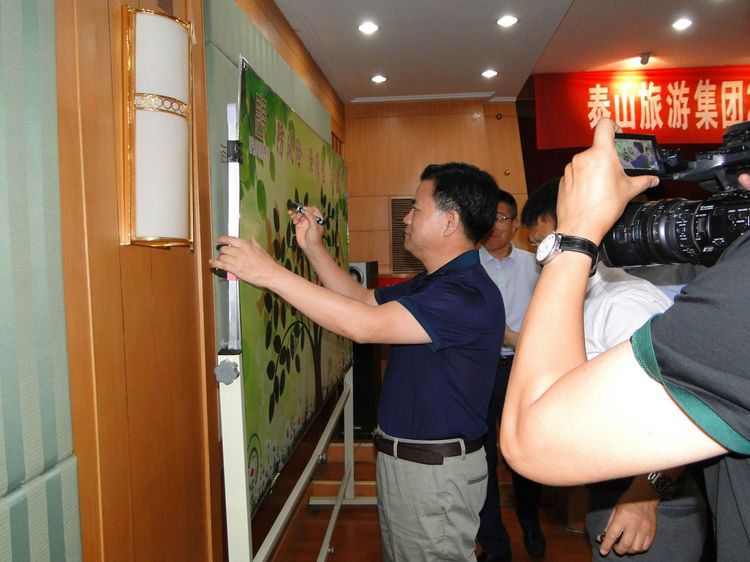 共树安全”联名签字活动结束后,旅游集团张剑董事长做了动员讲话,并就如何开展好“安全生产月”活动提出具体要求,他指出一是要统一思想、明确目标,切实增强开展好安全月活动的信心;二是要明确任务,突出重点,狠抓各项措施落实;三是要加强领导,精心组织,确保各项活动取得实效。