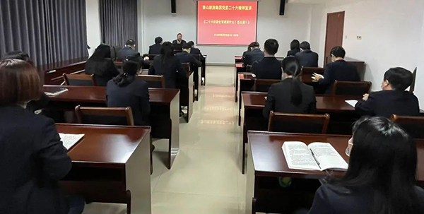 为进一步推动党的二十大精神学习宣贯活动的深入开展,引导集团广大干部职工自觉运用习近平新时代中国特色社会主义思想武装头脑,指导实践,筑牢思想根基,凝聚奋进力量,按照泰山文旅集团部署要求,11月10日,tqb谈球吧集团党委副书记、集团宣讲团成员刘印强带领集团广大干部职工学习解读习近平新时代中国特色社会主义思想、学习领会党的二十大核心要义和精神实质。