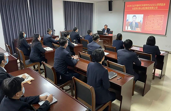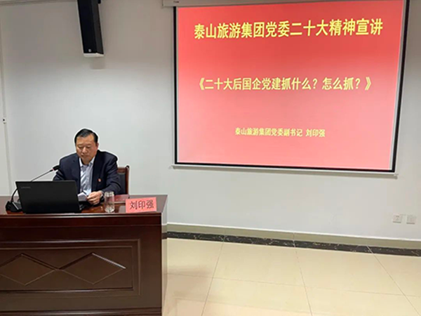 为进一步推动党的二十大精神学习宣贯活动的深入开展,引导集团广大干部职工自觉运用习近平新时代中国特色社会主义思想武装头脑,指导实践,筑牢思想根基,凝聚奋进力量,按照泰山文旅集团部署要求,11月10日,tqb谈球吧集团党委副书记、集团宣讲团成员刘印强带领集团广大干部职工学习解读习近平新时代中国特色社会主义思想、学习领会党的二十大核心要义和精神实质。
