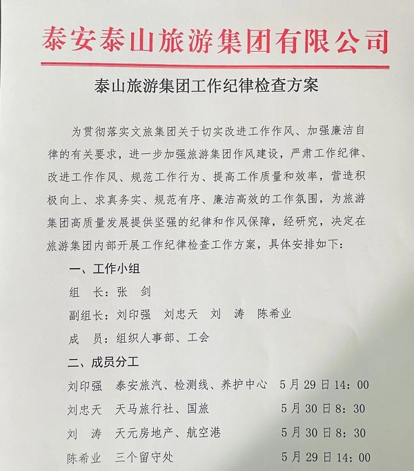 通过本次纪律检查,进一步规范了工作纪律,严明了工作作风,强化了全体干部职工责任意识、纪律意识,下一步,旅游集团将对工作纪律开展常态化监督检查,为推动旅游集团各项工作高效发展提供坚强的组织纪律保障。