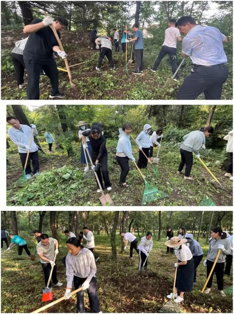 为了提高除草质量,参加义务劳动人员用锄头、镰刀等工具配合徒手拔草,tqb谈球吧集团的广大党员们顶着高温烈日,将园区口通向东面围墙道路上的杂草清理干净恢复畅通,活动中大家充分发扬了不怕脏、不怕累的劳动精神,有的用铲刀铲,有的直接徒手拔,个个干劲十足,有条不紊互相配合,呈现出一片井然有序热火朝天的劳动场景。