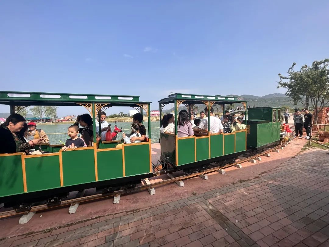 今年中秋国庆假期期间,泰山桃花源景区观光小火车、帐篷营地、跑马场等项目正式运营,首次面向大众开放,吸引了众多游客前来打卡体验。依托绿城集团先进的设计运营理念,打造全新景点镜湖露营基地,以山湖落日景为特色,建设印第安大草帽水吧、天幕露天烧烤、萌宠乐园等多项设施,涵盖露营、团建、亲子娱乐、餐饮烧烤、垂钓等内容,是潮泉镇及周边地区首个大型户外露营旅游基地。铺设观光小火车,轨道长2200米,可穿行整片花海景区,极大丰富了游客的游玩体验,收获了更多游客粉丝。小长假期间,泰山桃花源景区多元化文旅业态和配套设置,满足了不同年龄段游客的游玩需求,累计接待游客量达4万人次。