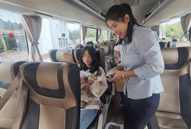 “双节”期间,泰山景区持续火爆,游客量创历年法定假期新高。自9月29日起,泰安旅汽坚守岗位,履职尽责,增派30部车辆助力泰山景区客运服务工作。节前制定客运计划,对运营车辆加强安全维护,对驾驶员开展服务礼仪培训,以务实的举措和贴心的服务,确保景区有序运行,节日期间累计运送游客6万人次。除景区客运工作外,旅游车、班车、定制客运上座率持续提升,共计出车195台次。机场直通车于中秋节当天开展特色服务活动,在东都宾馆和虹桥宾馆发车点为乘客送去月饼,多措并举提升优质服务、满足乘客需求,累计出车224个班次,运送往来乘客1977人次。