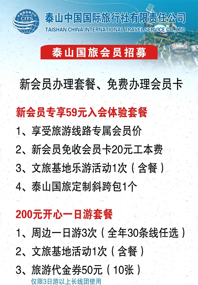 为优化国庆假期的旅游线路,节前泰山国旅到东平大宋不夜城、东营黄河入海口、台儿庄古城等景点进行踩线体验,推出9条精品旅游线路,通过实地查看景区道路交通、硬件设施、配套服务等情况,了解游览内容、参观线路、接待能力,推出新线路,引流新客源。策划会员入会活动,制定入会体验套餐、旅游代金券等优惠方案,吸引入会会员达300余人。通过全员营销,十月份云南、张家界、西安等热门线路及欧洲六国12日游等长线团持续收客,助力我市文旅市场持续升温。