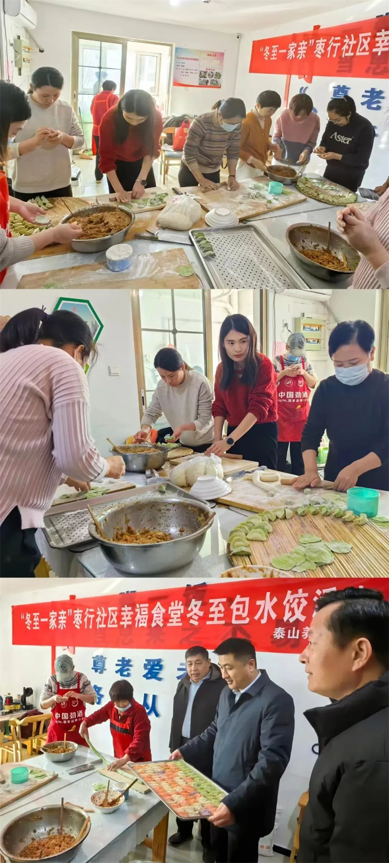 经过两个多小时的忙碌,热腾腾的饺子出锅了。集团工作人员和社区志愿者们将刚出锅的饺子装进餐车,送到社区居住的高龄老人和需要看护老人身边,让老人们在寒冷冬日感受到来自集团和枣行社区大家庭的关怀和温暖。老人们吃着热气腾腾的爱心饺,激动地说:“你们送来的饺子吃在嘴里,暖在心里。”