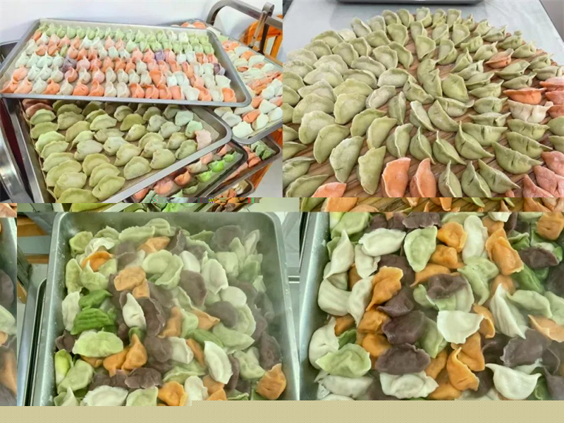 其乐融融包水饺。活动中,大家分工合作,有的和面、有的拌馅、有的擀皮、有的包饺子,每一个环节都井然有序,大家忙得不亦乐乎,活动现场笑语不断,洋溢着喜悦祥和的气息。不一会儿,桌子上就铺满了一个个彩色漂亮的饺子。