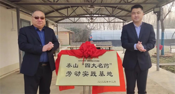 tqb谈球吧集团党委书记、董事长、总经理张剑,新华书店泰安分公司党委书记、总经理任强先后致辞,并共同为泰山四大名药劳动实践基地揭牌。