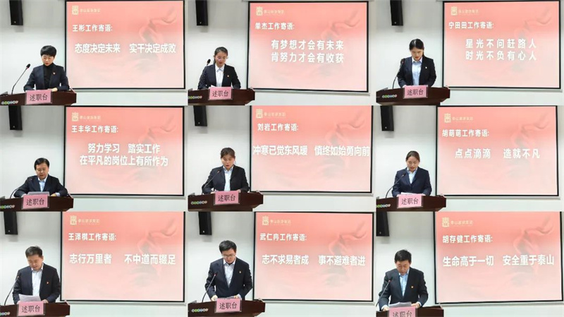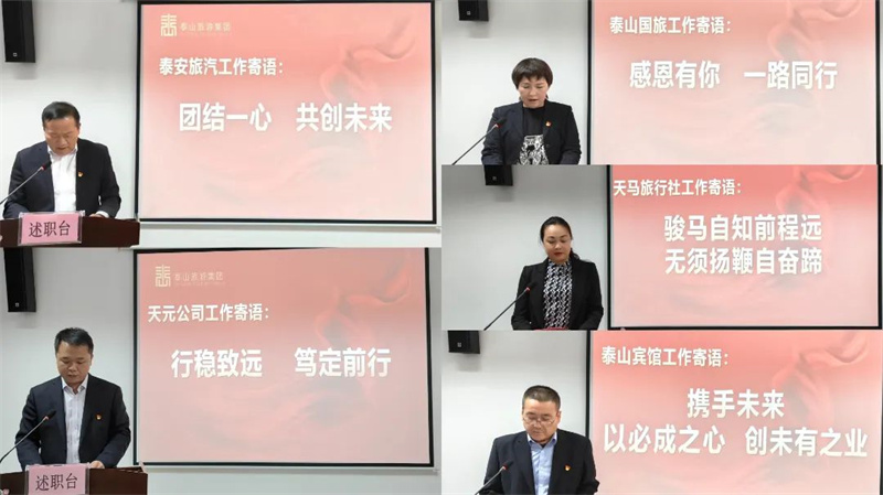 会上,泰安旅汽、天元公司、泰山国旅、天马旅行社、泰山宾馆主要负责人及机关全体人员围绕2023年度工作完成情况依次进行述职,总结亮点与经验、剖析问题与不足、提出措施与思路,认真谋划2024年重点工作。通过述职增进交流、相互学习、促进提升,为新的一年开好篇、起好步、谋好局奠定坚实基础。述职工作结束后进行工作测评。