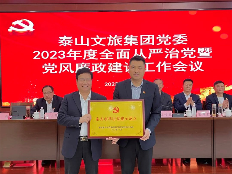 4.8泰山文旅集团对旅游集团“泰安市基层党建示范点”荣誉称号进行授牌。