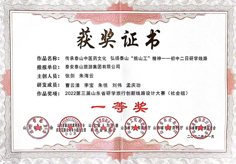 3.17tqb谈球吧集团斩获第三届山东省研学旅行创新线路设计大赛一等奖。