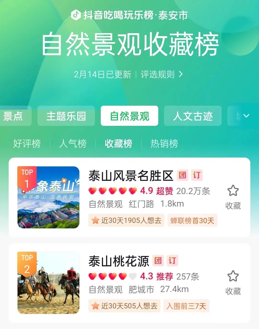 春节期间,泰山桃花源景区跑马场、环湖小火车、越野卡丁车、萌宠乐园人潮涌动、热闹非凡,吸引了众多游客前来打卡游玩,在抖音自然景观收藏榜中排名第二。2月10日(大年初一),景区内《齐鲁争霸》大型马术实景表演盛大开演、场场爆满、好评如潮,春节期间共接待游客7000余人次,成为泰城极具人气的景点之一。该项目通过大型马术表演、弓驽相见等形式,实景演绎春秋时期的历史故事。演出民族特色浓郁、场面气势恢弘、情节引人入胜,为游客带来全新的马术文化旅游体验。