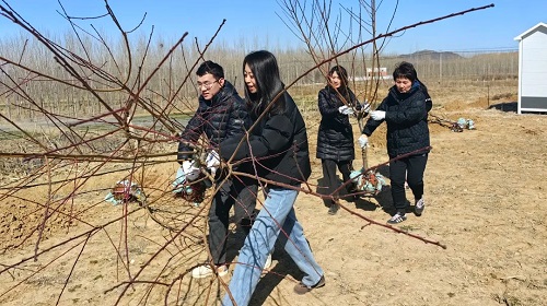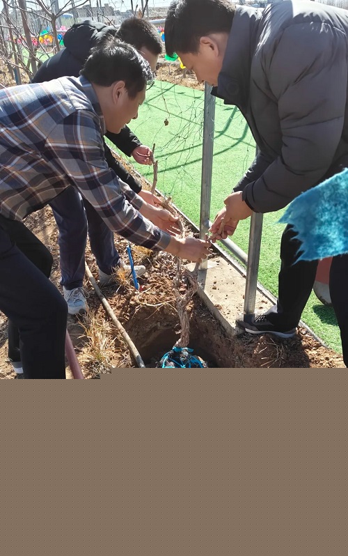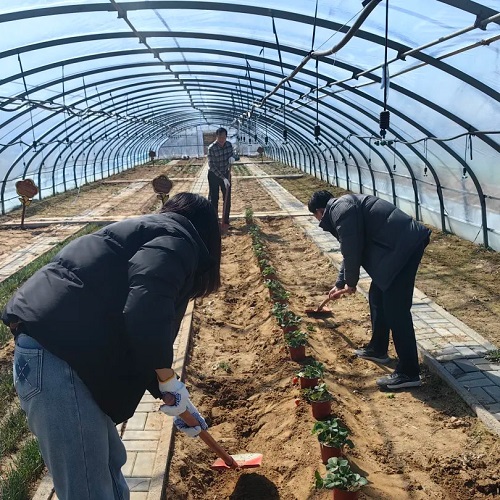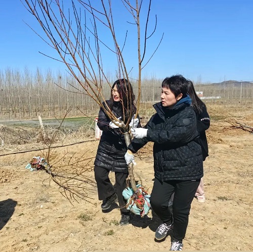 植树劳动现场,大家相互配合,每个环节都井然有序,将桃树、连翘、葡萄树苗栽种在春天的泥土里,用实际行动增加集团桃花源项目生态建设的“含绿量”。植下的是树木,孕育的是集团桃花源乡村振兴项目的绿色发展动能,让大家心里腾升“绿色的希望”。经过大家的共同努力,共植下桃树、连翘、葡萄等树苗120余株。