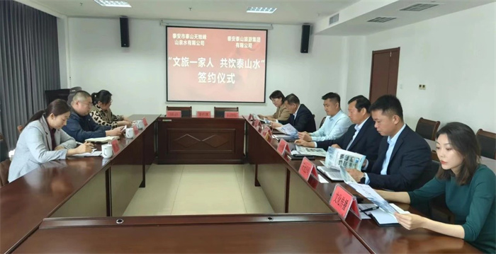 张剑对马继东一行的到来表示欢迎,他表示,集团机场专线、航空港、餐饮服务、研学旅行、文化培训等业务用水需求广泛,按照文旅集团“一家人”理念,旅游集团及各子公司全部使用泰山天烛峰山泉水,打通内部循环,贯通山上山下,助力文旅集团发展壮大。