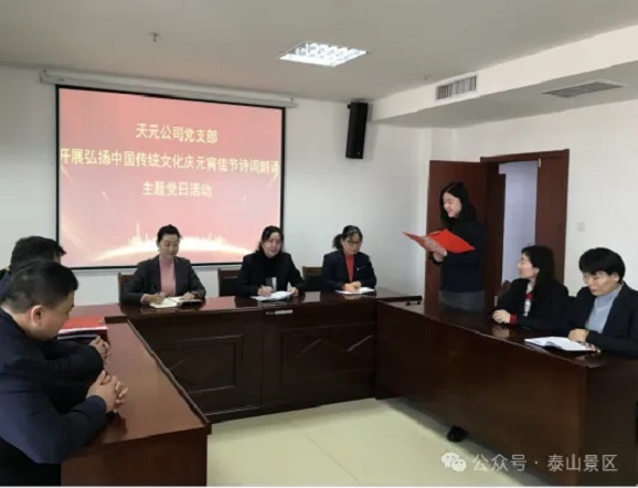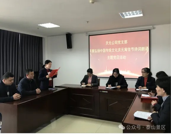 为推动中华传统文化传承创新,进一步丰富职工文化生活,营造浓厚的节日氛围,2月12日,天元公司党支部开展诗词朗诵主题党日活动,感受中华文化的深厚底蕴,欢度别样元宵佳节。活动中,支部党员通过PPT短片开展元宵节文化讲座,生动讲述元宵节节日起源、传说故事以及传统民俗等,让大家在交流中回味古人寄情山水之情,分享元宵佳节的心得感悟。在诗词鉴赏环节,通过诵读《十五夜观灯》、《木兰花令·元宵似是欢游好》等与元宵节相关的诗词,感受元宵佳节的热闹场景,领略传统文化的独特魅力。此次主题党日活动通过读经典、学经典、用经典,进一步传承中国传统文化,加深职工之间的交流互动,增强团队凝聚力和向心力,为企业发展注入了新的动力。