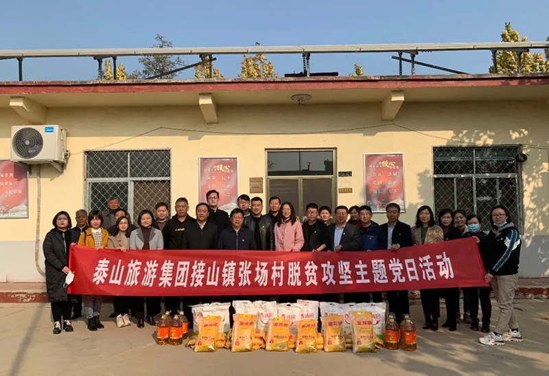 为贯彻落实市国资委党委四季度攻坚工作要求, 进一步践行国有企业社会责任,推动抓基层党建与促脱贫攻坚深度融合。11月12日上午,集团机关20余人前往市国资委驻村“第一书记”帮扶的东平县接山镇张场村开展了“脱贫攻坚”主题党日活动,慰问张场村8户贫困户及残疾儿童。泰安市国资委二级调研员唐衍刚、市国资委离退休干部科科长、一级主任科员赵华、集团党委书记、董事长张剑共同参加此次活动。