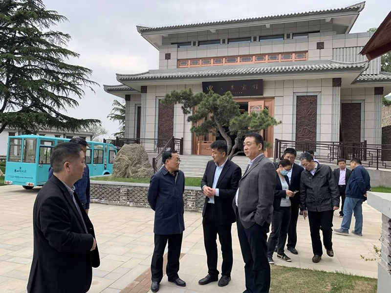 考察团一行听取了项目建设整体规划、运营定位和发展方向,实地考察了正在建设并初具规模的星级度假酒店、文旅片区花海公园、康养小院样板房以及书画艺术馆。