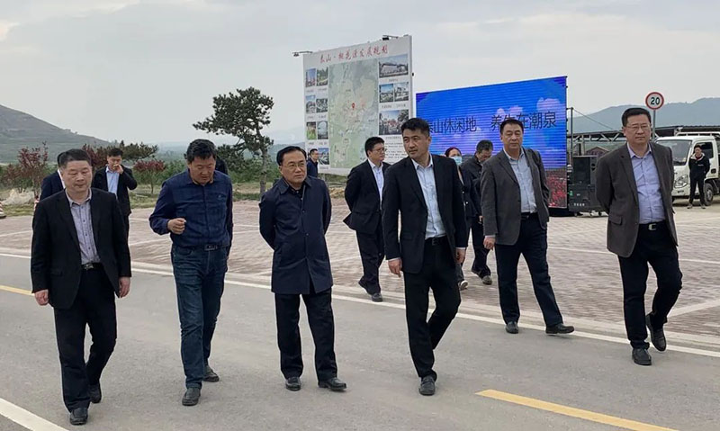 4月25日下午,在市国资委牵头推动下,山东省财金集团有限公司董秘张宏亮,山东省财金文旅产业发展有限公司董事长郭洪涛一行6人来泰,实地考察泰山桃花源森林生态康养小镇项目。市财政局、市财金集团有关负责同志,市国资委二级调研员陈刚、四级调研员李国庆,tqb谈球吧集团党委书记、董事长、总经理张剑陪同考察活动,洽谈合作事宜。