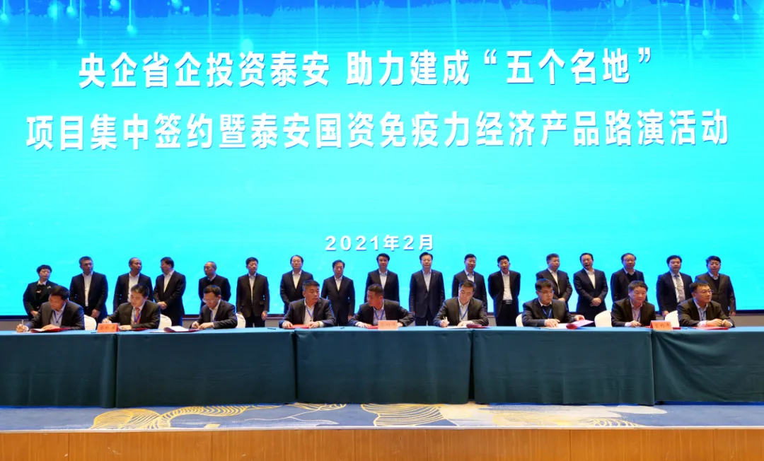 2021年2月28日,泰安市举行“央企省企投资泰安助力建成五个名地”项目集中签约暨泰安国资免疫力经济产品路演活动 摄影:司刚