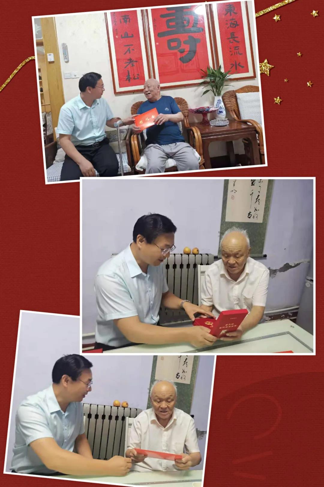 刘涛慰问老党员并送去“光荣在党50年”纪念章。